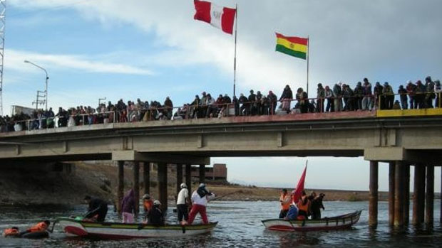 Este es el puente que sirve de nexo entre en el río Desaguadero que separa a Bolivia de Perú.